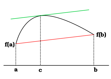 Therefore, if $\displaystyle f(a) = f(b) $, then there exists some $\displaystyle c \in [a, b] $ such that $\displaystyle f'(c) = 0 $.
