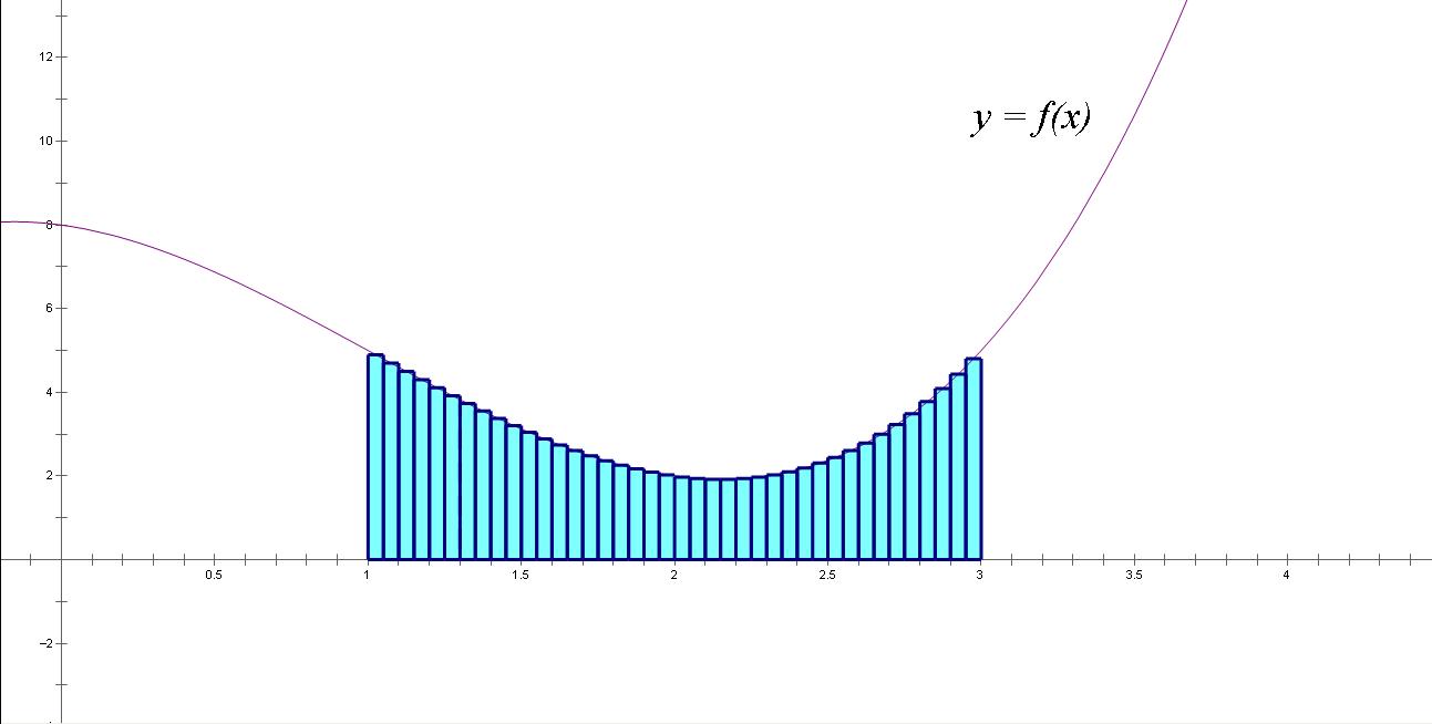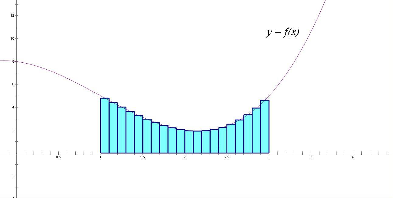 By making more subdivisions (making $n \to \infty$), this sum converges upon the true area.