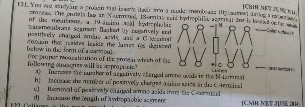 Now that I know the correct option and if I think backwards, having the positive charge removed will be beneficial to incorporate the protein. Because lipid bilayer is not permeable to charged species, so a neutral C-terminal followed by a hydrophilic region will easily enter into the membrane.