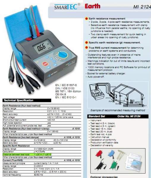 NOW,we are going to measure the resistance of earthing system with Earth tester. Our device is MI 2124 ,one production of METREL .