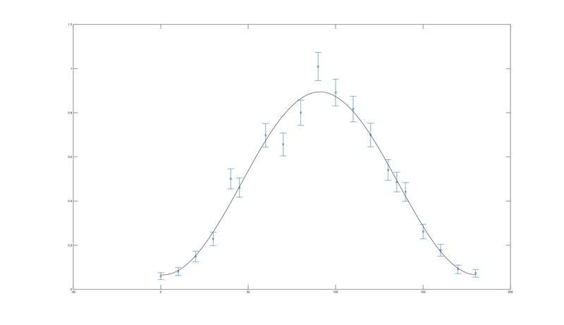 I have used MATLAB cftool to make a fit to the measured data using a ##\cos^2\theta## function with a few parameters, giving me a value of one of the parameters as $$b=1.82\pm 0.12.$$