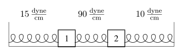 The discussion revolves around the equilibrium displacements of two blocks connected by springs, with specific masses and spring constants provided. Participants are examining the formulation of the governing equations of motion for the system.