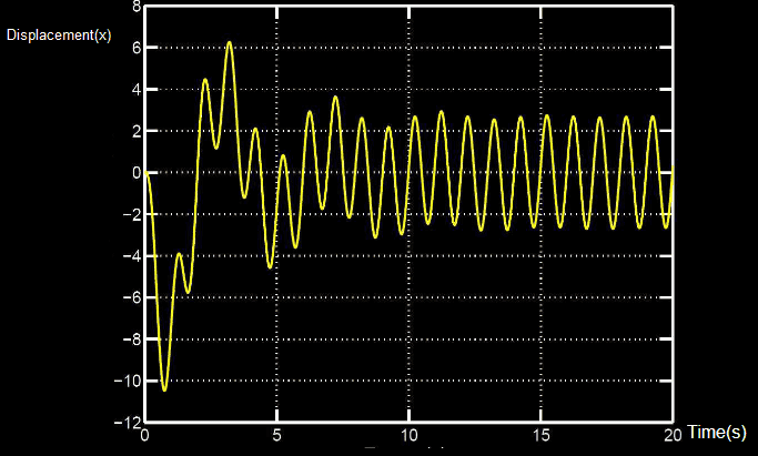 $$F = \frac{\omega}{2\pi}, \omega = \frac{2\pi}{T}$$ and we can get ##T## easily with the steady state part of the graph.