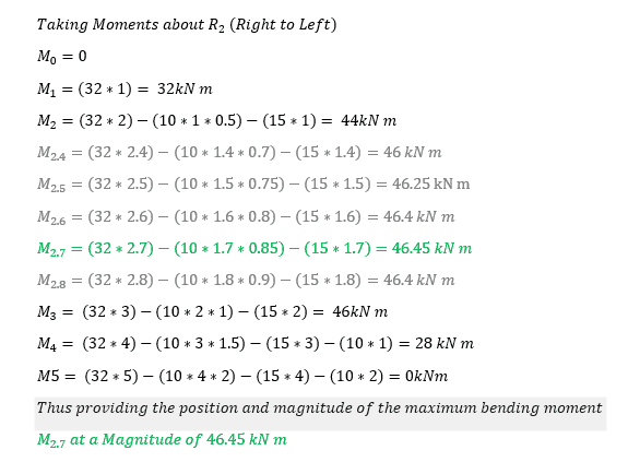 (b) Determine the position and magnitude of the maximum bending moment.