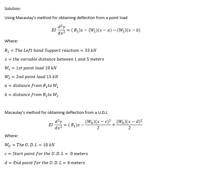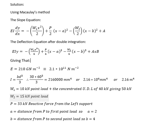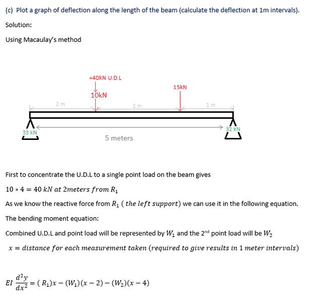 (c) Plot a graph of deflection along the length of the beam (calculate the deflection at 1m intervals).