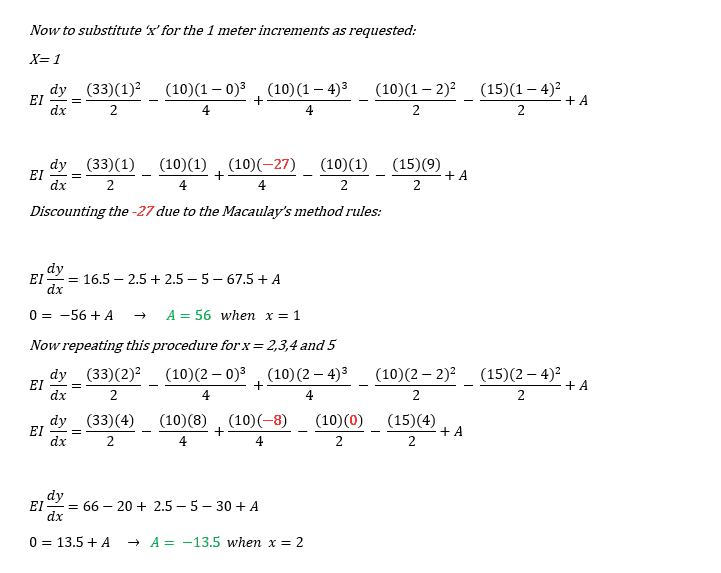 I think I need to work this out using Macauley's method, and it looks difficult. Can anyone advise on nice simple formula to use for each meter interval of deflection?