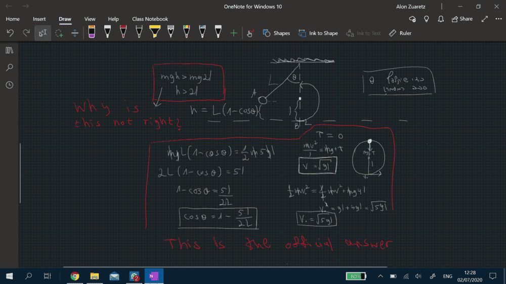 - assume Tension at the highest point of the loop is 0, because that's the minimun for a full loop.