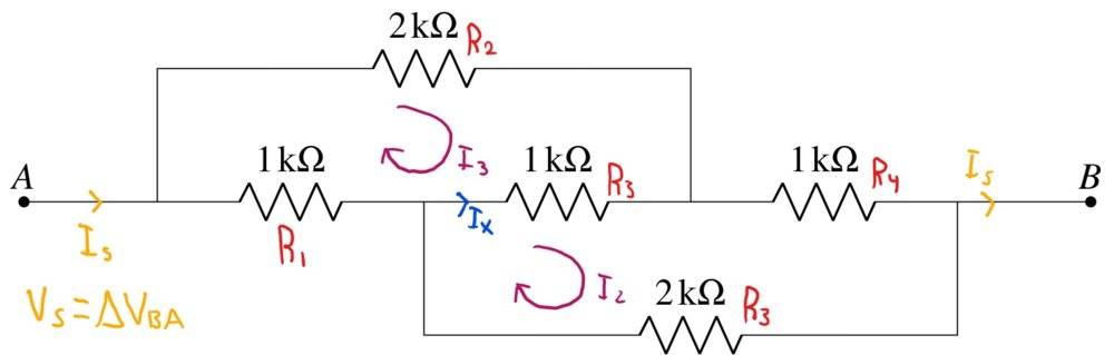 $$mesh 2: -V_s+I_2R_4+R_3(I_2-I_1)+I_2R_5=0$$