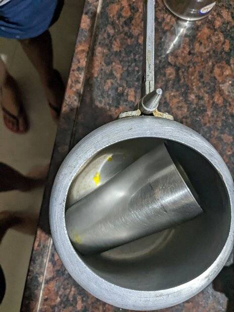 The discussion revolves around the problem of a metal drinking cup being stuck inside a pressure cooker. Participants explore various methods to extract the cup, including heating, cooling, and mechanical approaches. The conversation includes practical suggestions, safety considerations, and some humorous asides.