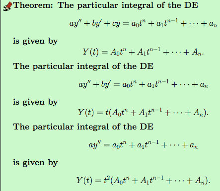Yp = (At3 + Bt2 + Ct + D) e 5t cos(3t) + (Et3 + Ft2 + Gt + H) e 5t sin(3t) ---equation 2