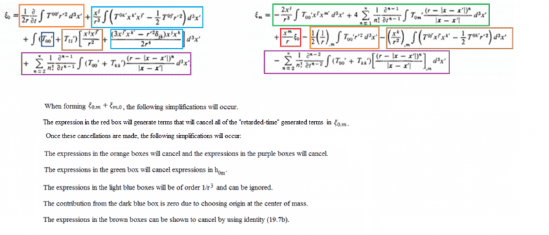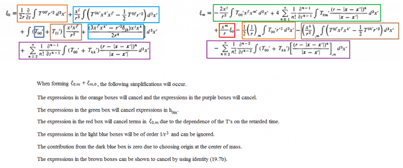 ##\qquad \quad +\big(\frac {x^k}{r^2} \big)_{,m}\int(T'^{0j}{ }_{,0})x'^{j}x'^kd^3x'##
