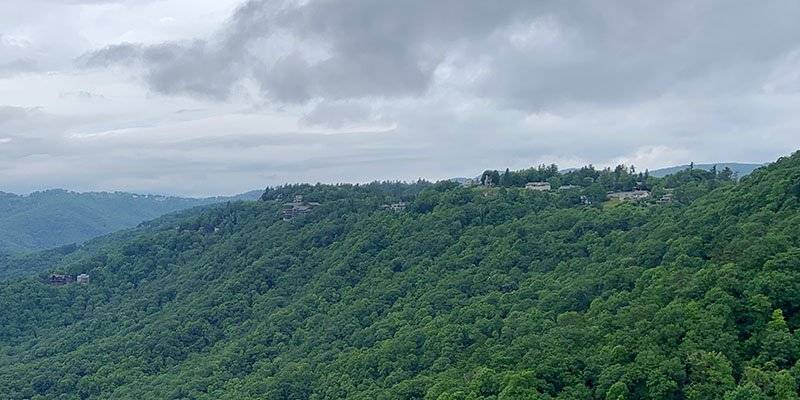 On Friday, my route north took me through the North Carolina mountains via US-321, with a stop at Blowing Rock, which has been popular with well-to-do tourists since the late 1800s. The town is named after a rock formation at the head of a valley that funnels winds from the west so that they blow vertically when they reach the rocks. It's been a privately-owned tourist attraction since the 1930s. The view is worth the admission fee IMHO, even on a cloudy day like Friday was.
