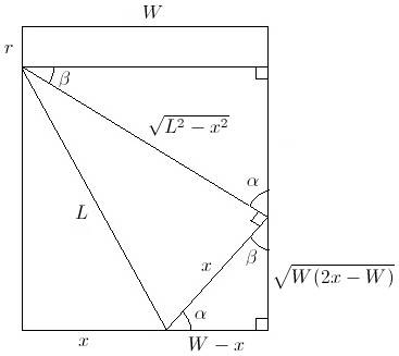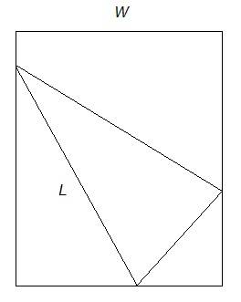 Consider a rectangular piece of paper of width $W$ laid on a flat surface. The lower left corner of the paper is bought over to the right edge of the paper, and the paper is smoothed flat creating a crease of length $L$, as in the diagram: