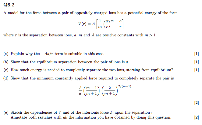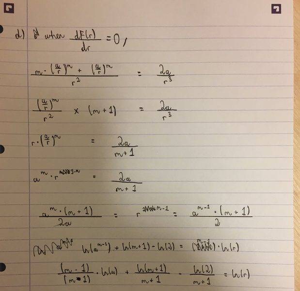 Apart from what is shown, I also have to use F = dV(r) / dr