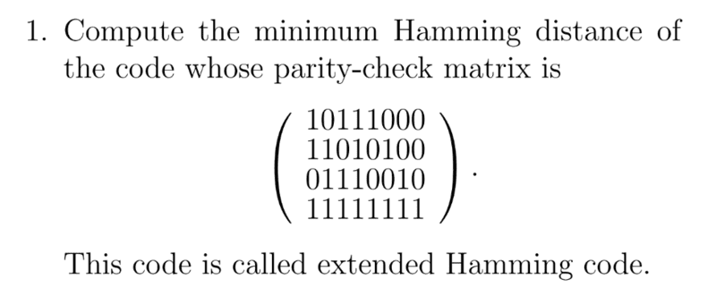 - Familiarity with parity-check matrices and their role in coding theory.
