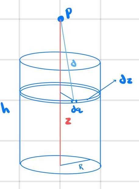 $$=k_e\frac{Q}{2\pi h}\frac{1}{(R^2+(z-z_{dq}))^{3/2}}\vec{r} dz_{dq}d\theta$$