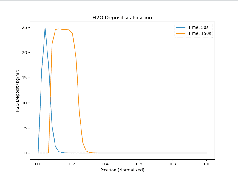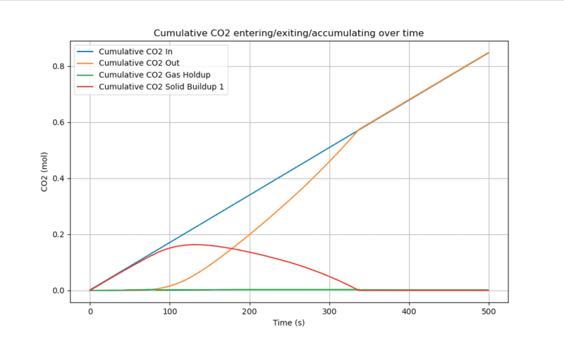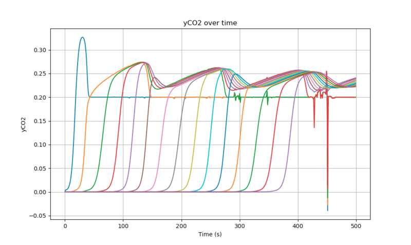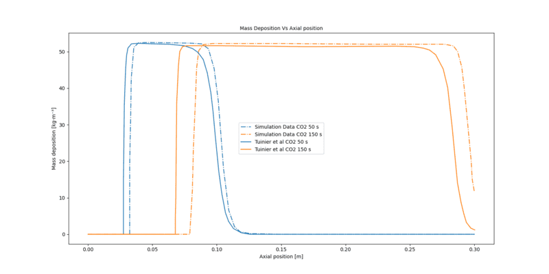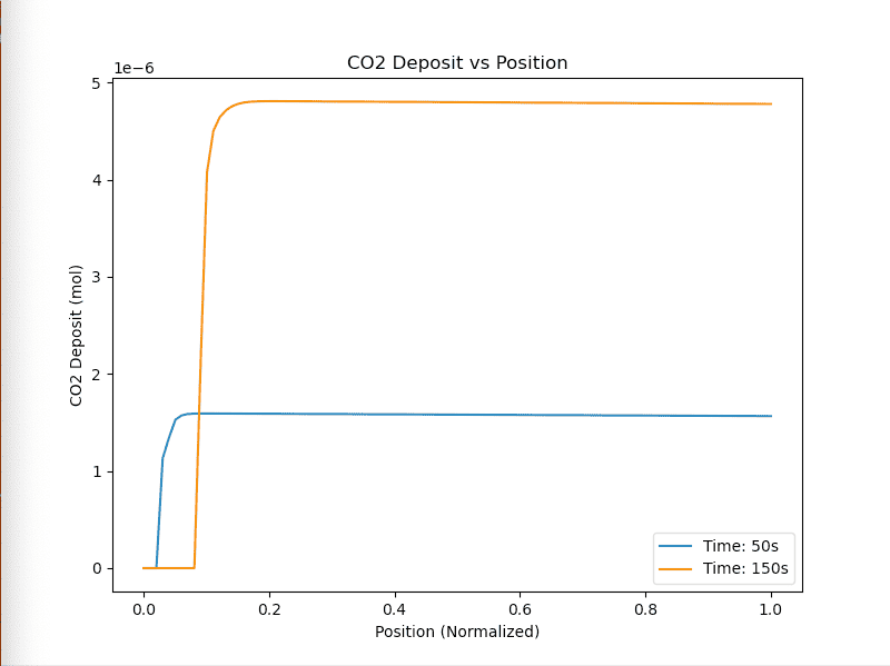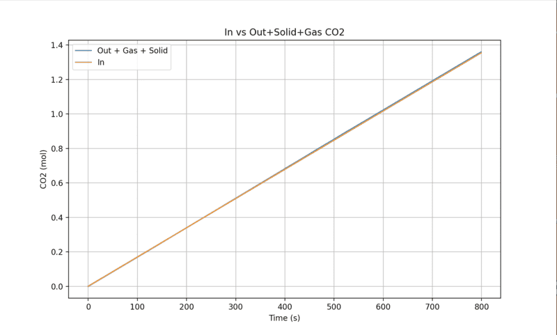 \dot{m}_j = \dot{m}_{j-1} + \frac{\rho_m \Delta z A_c}{T_g}\frac{dT}{dt} - (M_{CO_2}''*A_s)