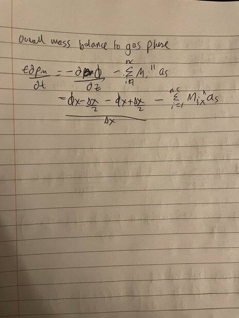 The rewriting of equation 10 makes sense to me. Just one question on the equations we have. If we have the solid and gas species mass balances, what additional information does having the overall mass balance for the gas phase give us i.e. why would we need this also?