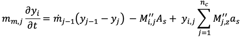 Agreed that this is unrelated to composition. However we mentioned earlier that we're not tracking composition changes in the gas phase so would this exiting molar flow technically be of the same composition as the inlet flow. Yes we will lose some of each component to the solid phase, however is it correct to say we assume that this does not affect the gas phase composition?Chestermiller said:This has nothing to do with composition. It says that the total number of moles exiting the tank per unit time is equal to the total number of moles per unit time entering minus the rate of change in the number of moles as a result of the rate of temperature increase at constant pressure, and minus the molar rates of solid- and liquid deposition onto the bed.