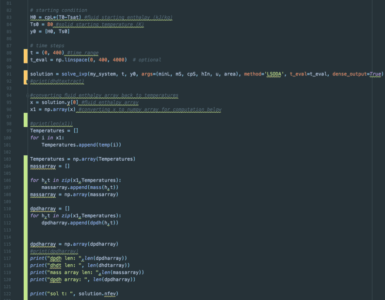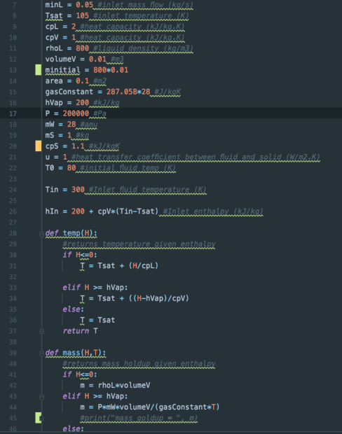 Right. I think I see what you're saying. I only need one initial condition for the bed - the temperature? I could then just get the enthalpy from the temperature