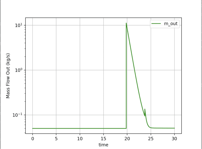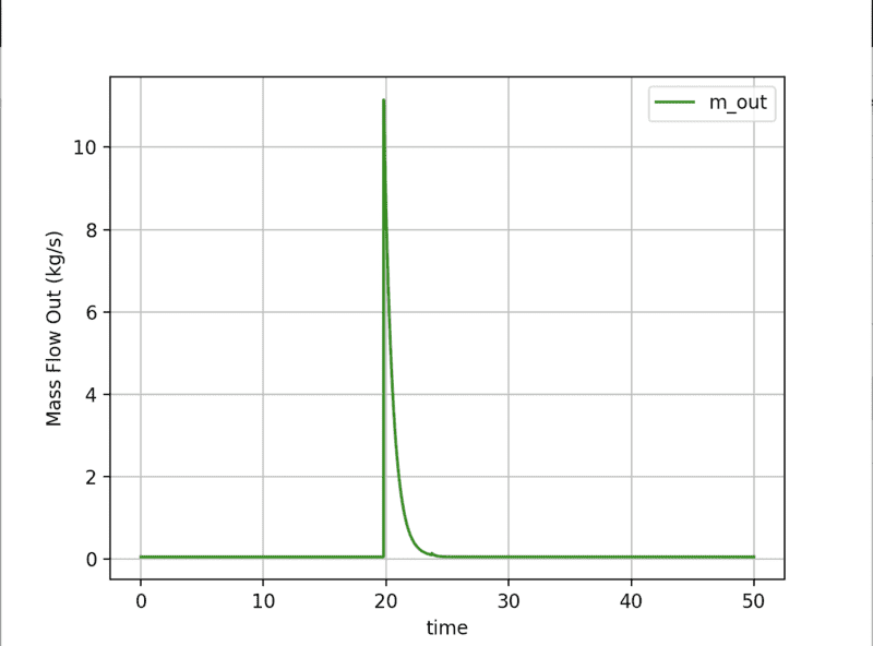Anyway this is the actual mass flow out versus time: