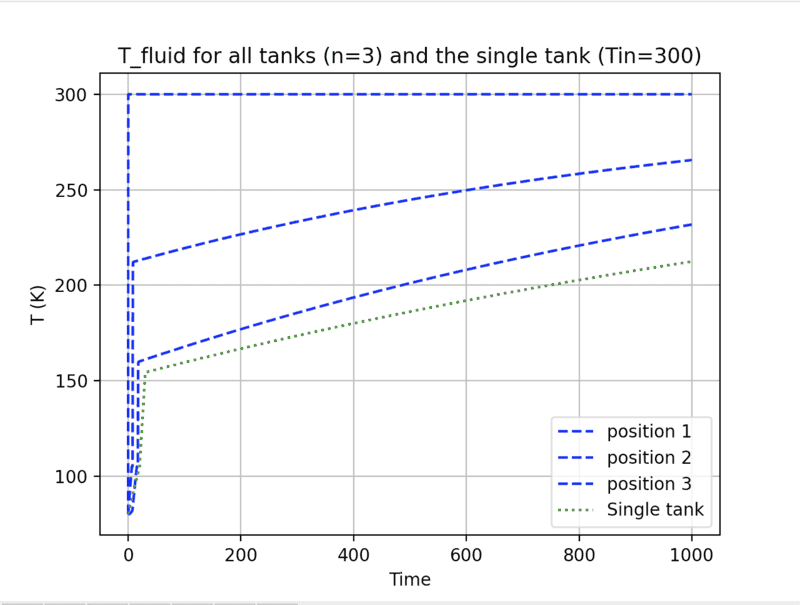 How about next doing the liquid-only calculation with many more tanks and doing the 3 tank version with the full temperature range with inlet at 300 K?