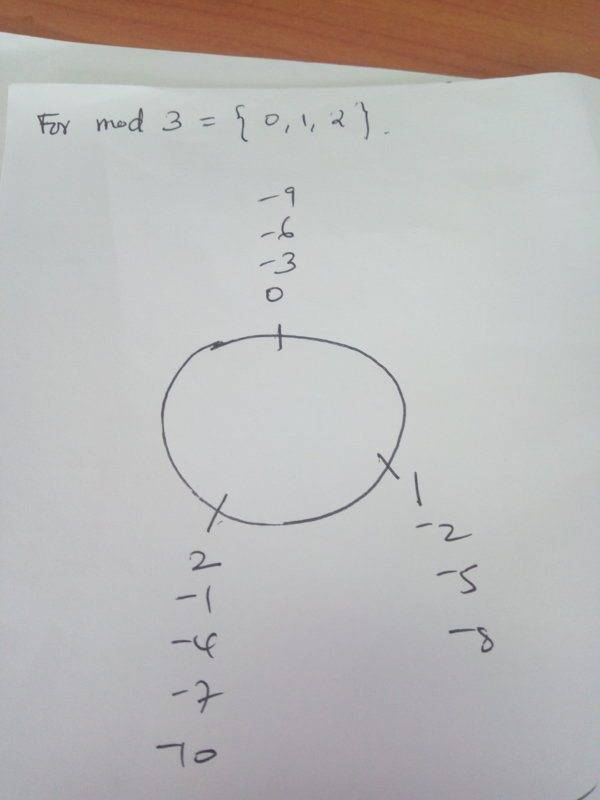 The discussion revolves around understanding modular arithmetic, specifically how the remainder is determined in the context of negative numbers. Participants explore the equivalence of numbers in modular systems, particularly focusing on the case of -10 modulo 3.