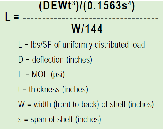 - There is a discussion about the significance of the MOE in relation to material stiffness and its application in load calculations for shelving.