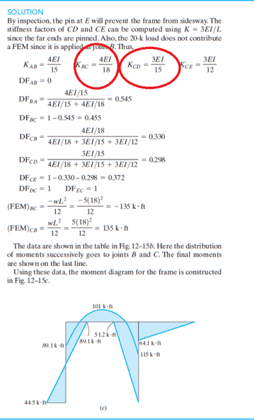The discussion revolves around the stiffness factors for a frame structure, specifically focusing on the connections at points B and C, and whether they are fixed or pinned. Participants explore the implications of these assumptions on the calculations of stiffness factors KAB and KCD.