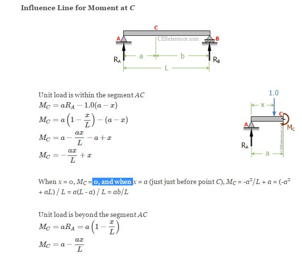- A participant asks how to determine when to apply the unit load within segments AC or CB, indicating a need for further clarification on the application of the unit load in the context of the influence line for the moment at point C.