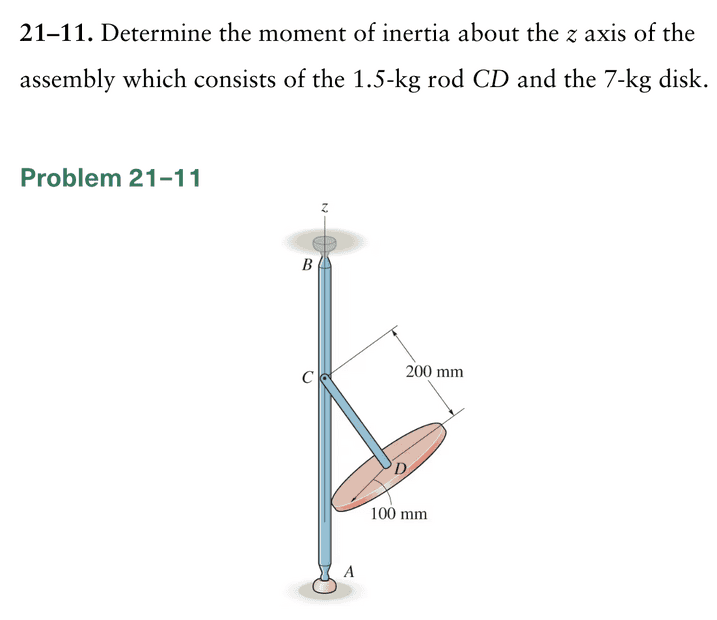 - Determine the moment of inertia about the z axis of the assembly which consists of the 1.5-kg rod CD and the 7-kg disk.