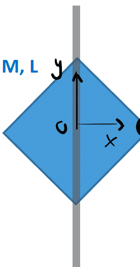 - Find the moment of inertia of a uniform square plate of mass M and side L rotating around an axis through its diagonal.