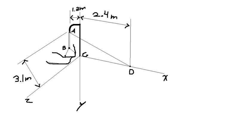 a small boat hangs from two davits one of which is shown in the figure. the tension in line ABAD is 369 N. Determine the moent about C of the resultant force Ra exerted on the davit at A