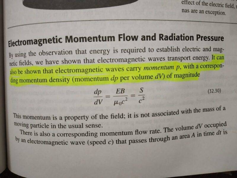 Another thing is that I come across; is on a page in the book University Physics by Sears and Zemansky 12th Edition, where they talk about Electromagnetic momentum flow and radiation pressure.
