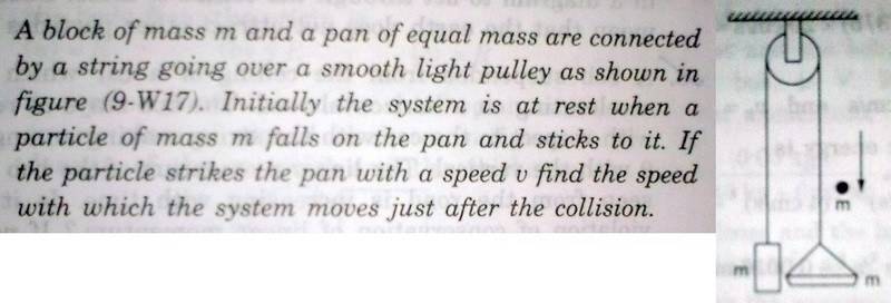 Taking the pulley and strings, pan, ball, block as system ... momentum is conserved