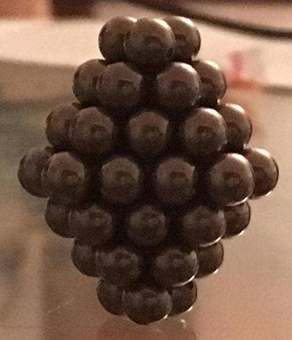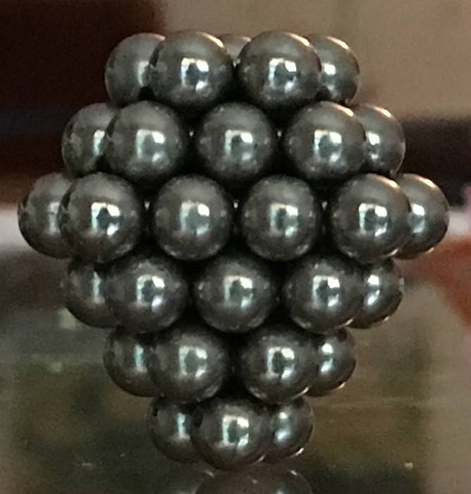 If a copper wire is wound around a piece of iron, nickel or cobalt, and a voltage is applied to the wire, it takes a longer amount of time for the current to reach its maximum value, than if the iron were replaced with a different material, such as glass— a phenomenon known as inductance. My understanding is within the ferromagnetic substance, the d-orbital electrons come into alignment with the external magnetic field, in a process which substantially increases the flux density of the externally applied field. I was wondering whether it is thought there is any momentum transfer between the d-orbitals and the nucleus causing or facilitating the inductance property? As I side note I was wondering this while playing with the close packing of magnetic spheres with the same # of spheres as common isotope numbers of cobalt, nickel and iron, as well as gadolinium, dysprosium and holmium. Specifically the radial symmetrical geometry for these specific #’s of spheres observed was bipyramid & truncated bipyramid.