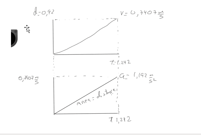 Using the formula for distance d=v*t, I know my final velocity is 0.7407 m/s then, I have two graphs: