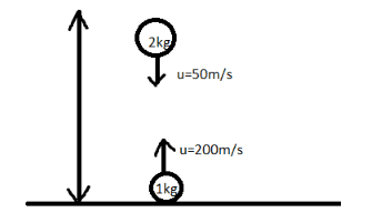 Two particles A and B of masses 1 kg and 2 kg respectively are projected in the directions shown in figure with speed uA =200m/s and uB =50m/s. Initially they were 90m apart. They collide in mid-air and stick with each other. Find the maximum height attained by the centre of mass of the particles.