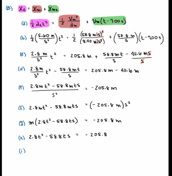 Now if you'll look at my attached image, you can see what a disaster I am making of this. We want ##t##, but there are also seconds in the equations. I'd imagine the meters should cancel.