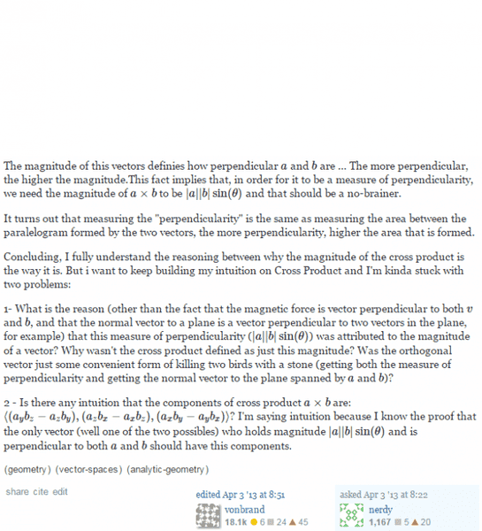 this question is a repost from math stackexchange because that guy worded the question so perfectly the question i really wanted to ask about cross products. *please see image below*
