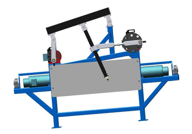 On the image below are the mesurements of the moving parts [mm]. The position of both motors at any given time is known. The speed at any given time is also known (nominal speed is 1500 rpm).