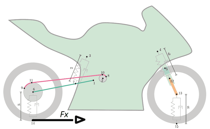 I'm having issues in the application of tire forces while deriving a multi-body model of a motorcycle via Lagrange.