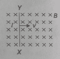 A small conducting rod of length l moving with a uniform velocity v in a uniform magnetic field B experiences a magnetic force that causes the electrons within the rod to shift. This shift results in a deficit of electrons at one end, specifically end Y, which becomes positively charged. The direction of the magnetic force can be determined using the right-hand rule, which relates the velocity of the electrons and the direction of the magnetic field. Understanding this relationship is crucial for explaining the induced current in the rod.