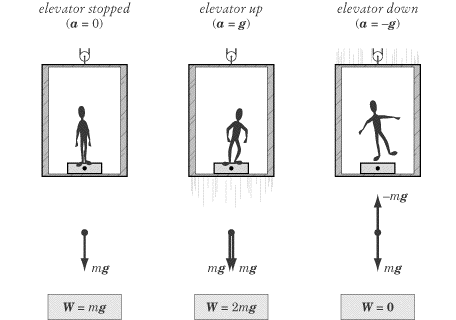 2. Ok what about lift moving down, why don't we feel any weight? Ok the explanation is we are moving with gravity, but if the lift is not accelerating at 9.8 ms2 we should feel the gravity right.