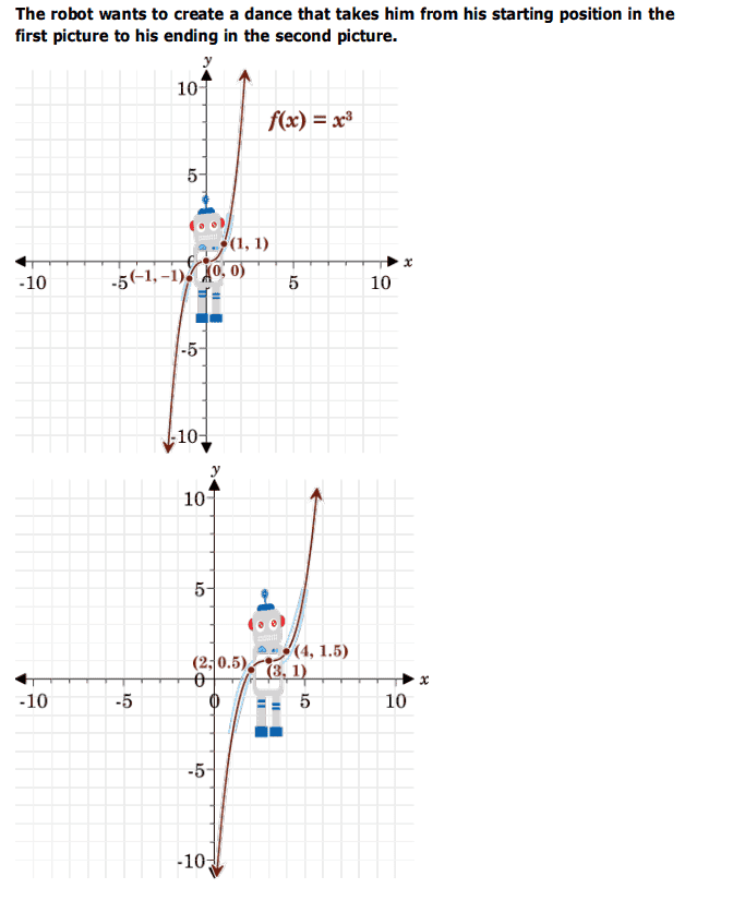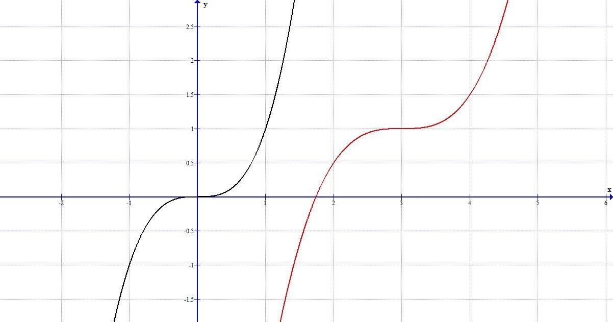 I have to transform the first function which is f(x)=x^3 to the second function. First, I have to find each shift then combine those to make a new function equation. I've used desmos and I know that there is a horizontal shift 3 units to the right. There is a vertical shift up but I don't know how many units. And I believe there is a stretch. There are only 3 transformations. PLEASE HELP!