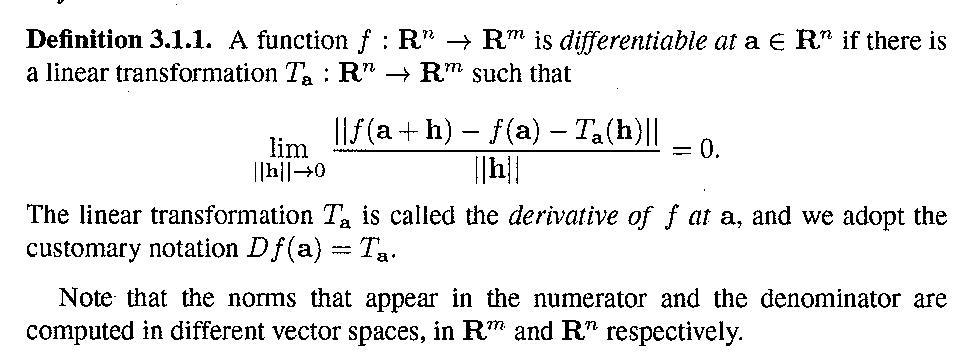I am reading Andrew McInerney's book: First Steps in Diofferential Geometry: Riemannian, Contact, Symplectic ... and I am focused on Chapter 3: Advanced Calculus ... and in particular on Section 3.1: The Derivative and Linear Approximation ...