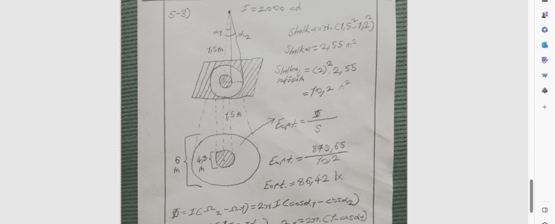 - A point luminaire with a luminous intensity of 2000 cd in all directions is 3 m away from the center of a plane