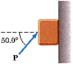 A block of mass 2.00 kg is pushed up against a wall by a force P that makes a 50.0° angle with the horizontal as shown below. The coefficient of static friction between the block and the wall is 0.258. (The attached picture might help).