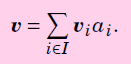 Now in the first case, I could at least work with it, as I could read that notion "i in I" means a family of vectors/scalars, where "I" denotes the entire family, and i denotes an individual vector/scalar. So basically what this means is: