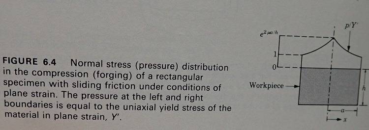 Next, we look at the pressure distribution between the die and the object. The pressure distribution is an exponential curve if there is sliding friction between the die and the object, and triangular if there is no sliding (the object sticks to the die).